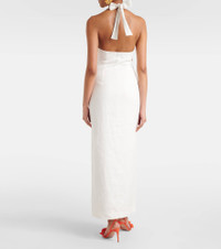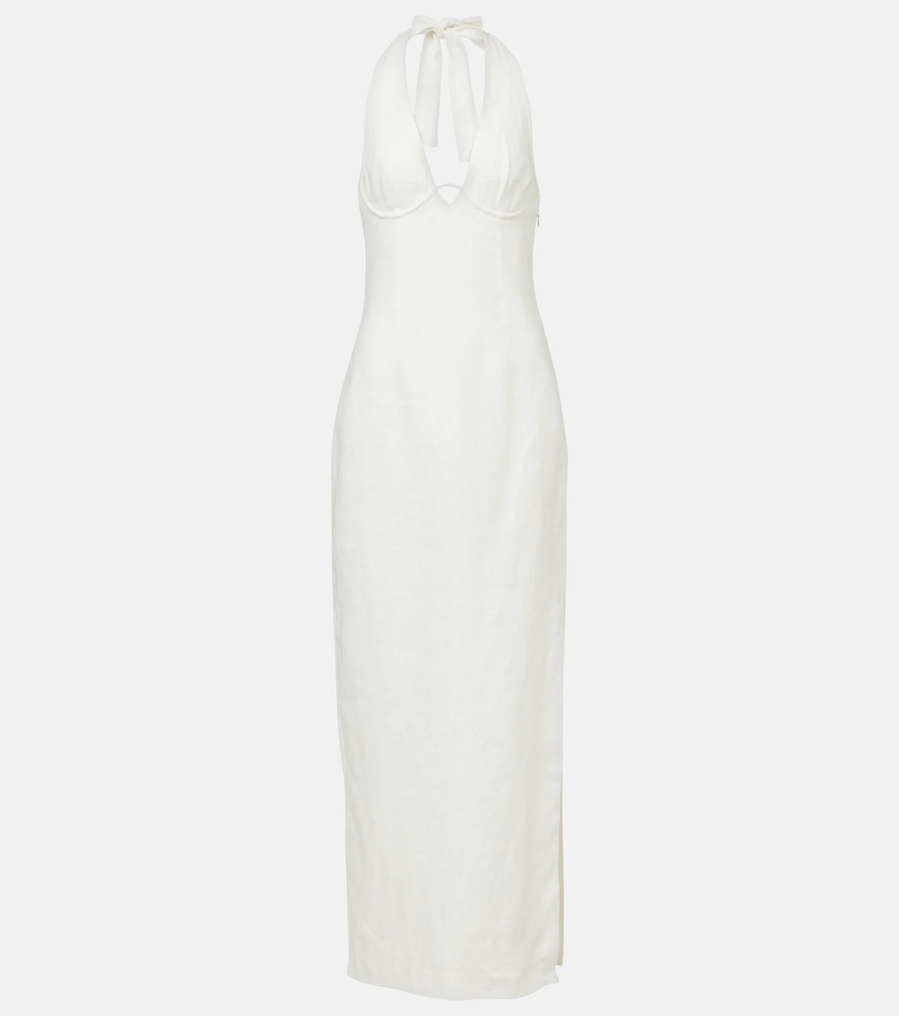 An acronym for “separates, intimates, and ready-to-wear”, SIR sets the standard for easy-to-wear wardrobe staples. Shaped with a halter neckline, underwire bodice, and side slit, the Violet linen maxi dress is perfect for summer soirees. Product Details - Material: 100% linen - Care instructions: dry clean - Handmade in China - Designer color name: Ivory - Item color: white - Closure: zipped side, self-ties - Lining: 100% cotton - Item number: P01041723 Size & Fit - True to size - Low back - Cinched waist - Non-stretchy fabric - slit length 59,0cm-23" - The model seen in the picture is 178cm-5'10" and wearing a size 1