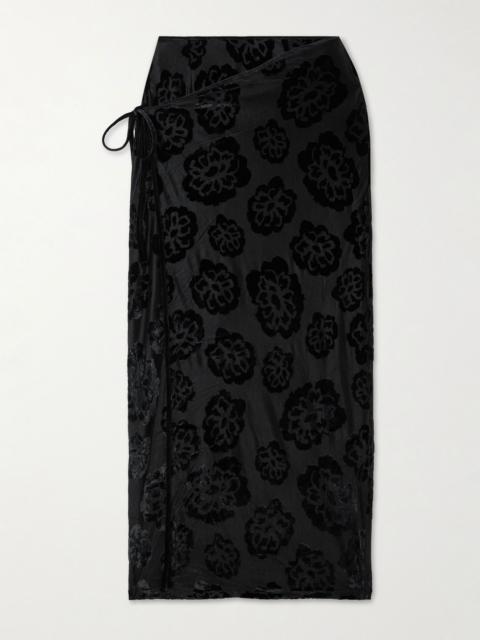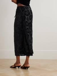 SIR's 'Vittoria' midi skirt echoes vintage '90s styles. It's made from stretch devore-velvet patterned with intricate florals and has a wrap design with slim ties at the side. Wear yours with a bikini on vacation or little black top for evening. Size & Fit SIR. follows its own size guide, please refer to below: - Size 00 = UK 4/ US 0/ IT 36/ FR 32 - Size 0 = UK 6/ US 2/ IT 38/ FR 34 - Size 1 = UK 8/ US 4/ IT 40/ FR 36 - Size 2 = UK 10/ US 6/ IT 42/ FR 38 - Size 3 = UK 12/ US 8/ IT 44/ FR 40 - Size 4 = UK 14/ US 10/ IT 46/ FR 42 - Fits true to size, take your normal size - Midi-length, designed to be worn at the waist - Lightweight, slightly stretchy fabric - Model is 180cm/ 5'11" and is wearing a size XSmall Model measurements: - Bust: 75cm/ 30” - Waist: 61cm/ 24” - Hip: 91cm/ 36” Details & Care - Black stretch devore-velvet - Ties at side - 68% polyester, 24% polyamide, 8% spandex; lining: 66% nylon, 34% spandex - Fully lined - Dry clean - Designer color: Midnight Floral