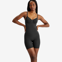SKIMS created shape wear to give people confidence in their everyday lives and the Seamless Sculpt collection is perfect for a little extra support and lift. The Bodysuit Mid-Thigh provides strong compression across the waist, tummy and legs for targeted control. Pockets in the rear add lift while the adjustable straps offer a custom fit. - 82% Nylon, 18% Elastane - Scoop Neckline - Adjustable Straps - Wide Open Gusset - Lifting Pockets in Rear - Machine Washable
