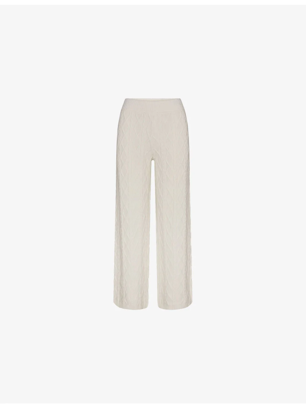 PRODUCT DETAILS - SKIMS knitted trousers - 58% viscose, 22% polyester, 20% polyamide - Relaxed fit, mid-rise, straight leg, ribbed waistband, cable-knit texture - Machine wash cold - True to size - Model is 5ft 9in/1.75m and wears a size small - Lightweight, stretchy Ref: R04538078