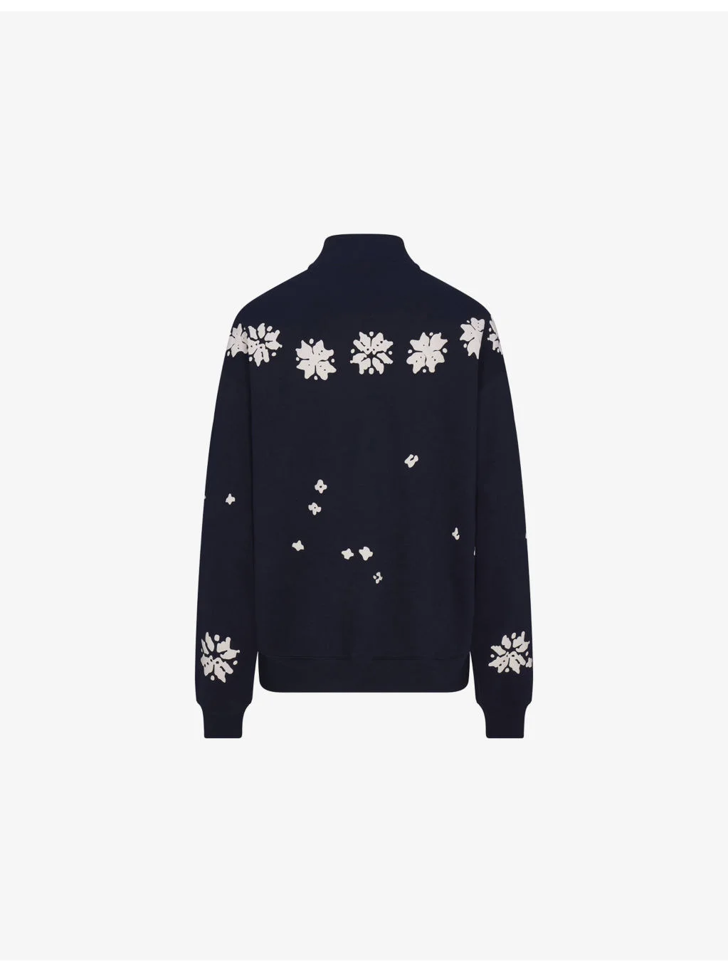 PRODUCT DETAILS - SKIMS cotton-jersey sweatshirt - 70% cotton, 30% polyester - Zip fastening - Oversized fit, mock neck, dropped shoulders, long sleeves, graphic text and embroidery, ribbed trims - Machine wash cold - True to size - Model is 5ft 10in/1.78m and wears a size small - Midweight, slight stretch Ref: R04548598