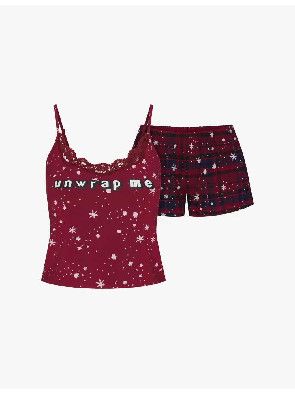 Cactus Plant Flea Market x SKIMS Lace Tank and Flannel Short Sleep Set