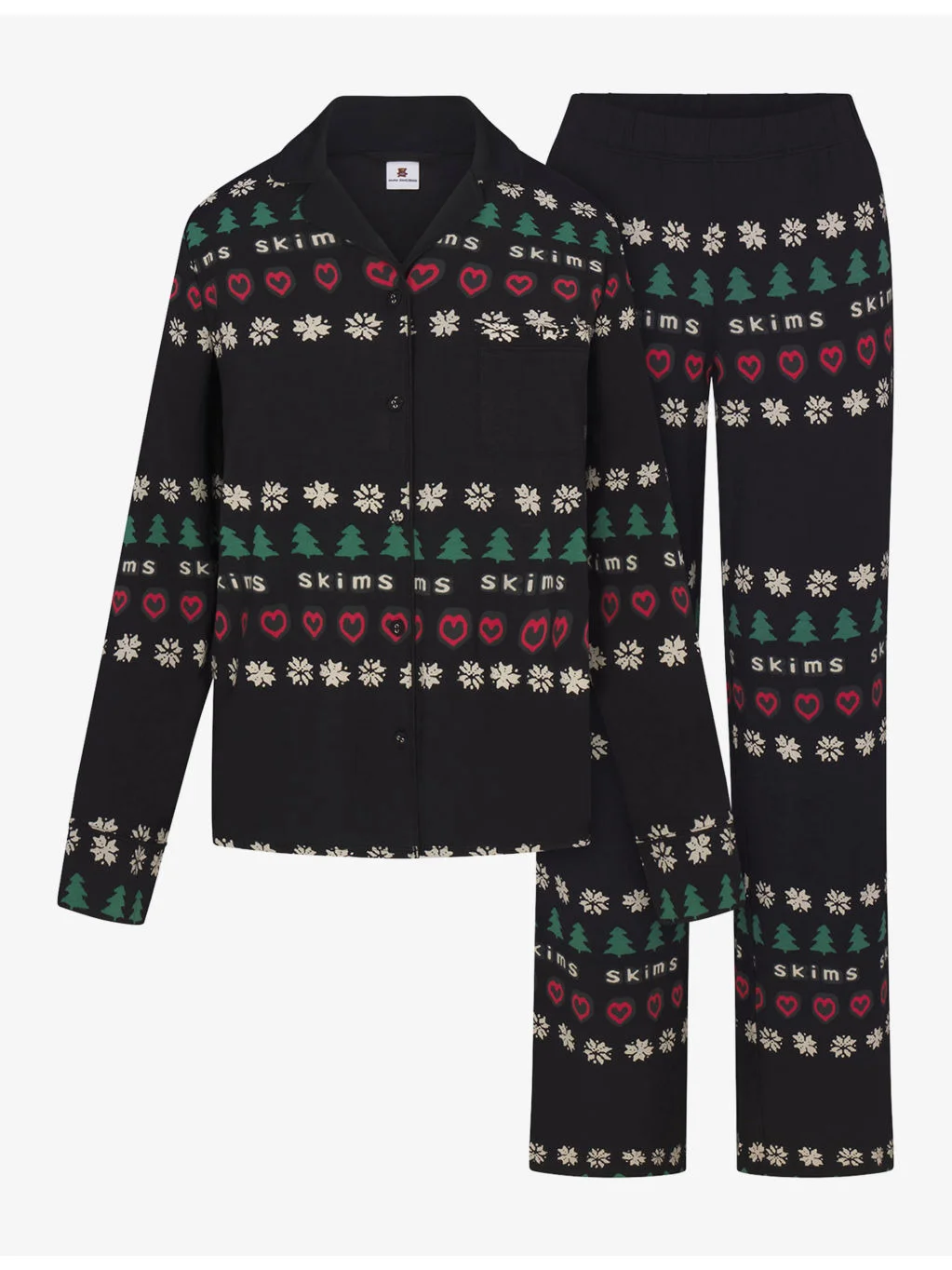 PRODUCT DETAILS - SKIMS modal-jersey sleep set - 93% modal, 7% elastane - Top: Relaxed fit, collar, long sleeves, patch pocket at chest - Bottom: Relaxed fit, mid-rise, elasticated waistband, straight leg, slip pockets at front - Machine wash cold - True to size - Model is 5ft 10in/1.78m and wears a size small - Lightweight, stretchy Ref: R04548593