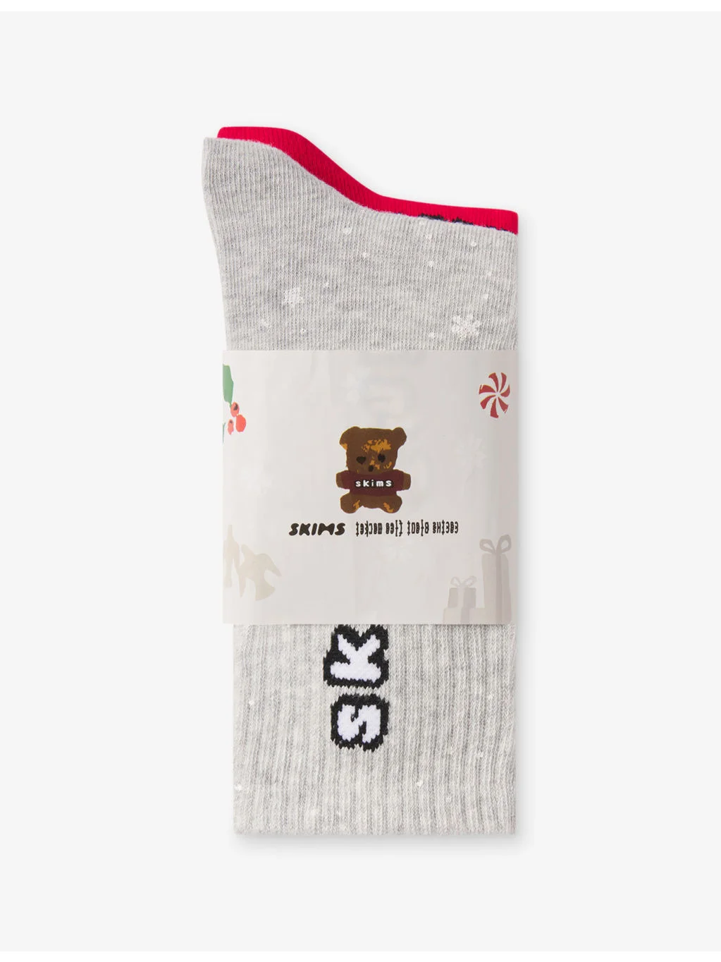 PRODUCT DETAILS - SKIMS pack of two cotton-blend socks - 78% cotton, 16% polyamide, 6% elastane - Crew length, ribbed texture, graphic pattern - Machine wash cold - Midweight, stretchy Ref: R04548586