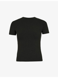 PRODUCT DETAILS - SKIMS stretch-cotton jersey T-shirt - 90% cotton, 10% elastane - Slips on - Fitted, round neck, ribbed trim at neck, short sleeves, tonal pick-stitch embroidery - Machine wash cold - True to size - Lightweight, stretchy