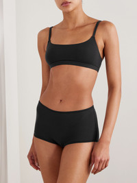 Kim Kardashian prioritizes comfort when building new SKIMS collections. Part of the 'Fits Everybody' line, these boy shorts are made from exceptionally soft and flexible stretch-polyamide. They have a mid-rise waist and offer full coverage. Size & Fit - 2XS = UK 2/ US 00/ IT 34 - XS = UK 4-6/ US 0-2/ IT 36-38 - S = UK 8-10/ US 4-6/ IT 40-42 - M = UK 12-14/ US 8-10/ IT 44-46 - L = UK 16-18/ US 12-14/ IT 48-50 - XL = UK 20/ US 16/ IT 52 - 2XL= UK 22-24/ US 18-20/ IT 54-56 - 3XL = UK 26-28/ US 22-24/ IT 58-60 - 4XL = UK 30-32/ US 26-28/ IT 62-64 - Mid-rise with full brief coverage - Model is 177cm/ 5'10" and is wearing a size XSmall - Bust: 76cm/ 30" - Waist: 62cm/ 24.5” - Hip: 91cm/ 36” Details & Care - Onyx stretch-polyamide - Lined at base - 76% polyamide, 24% elastane; lining: 100% cotton - Machine wash