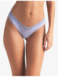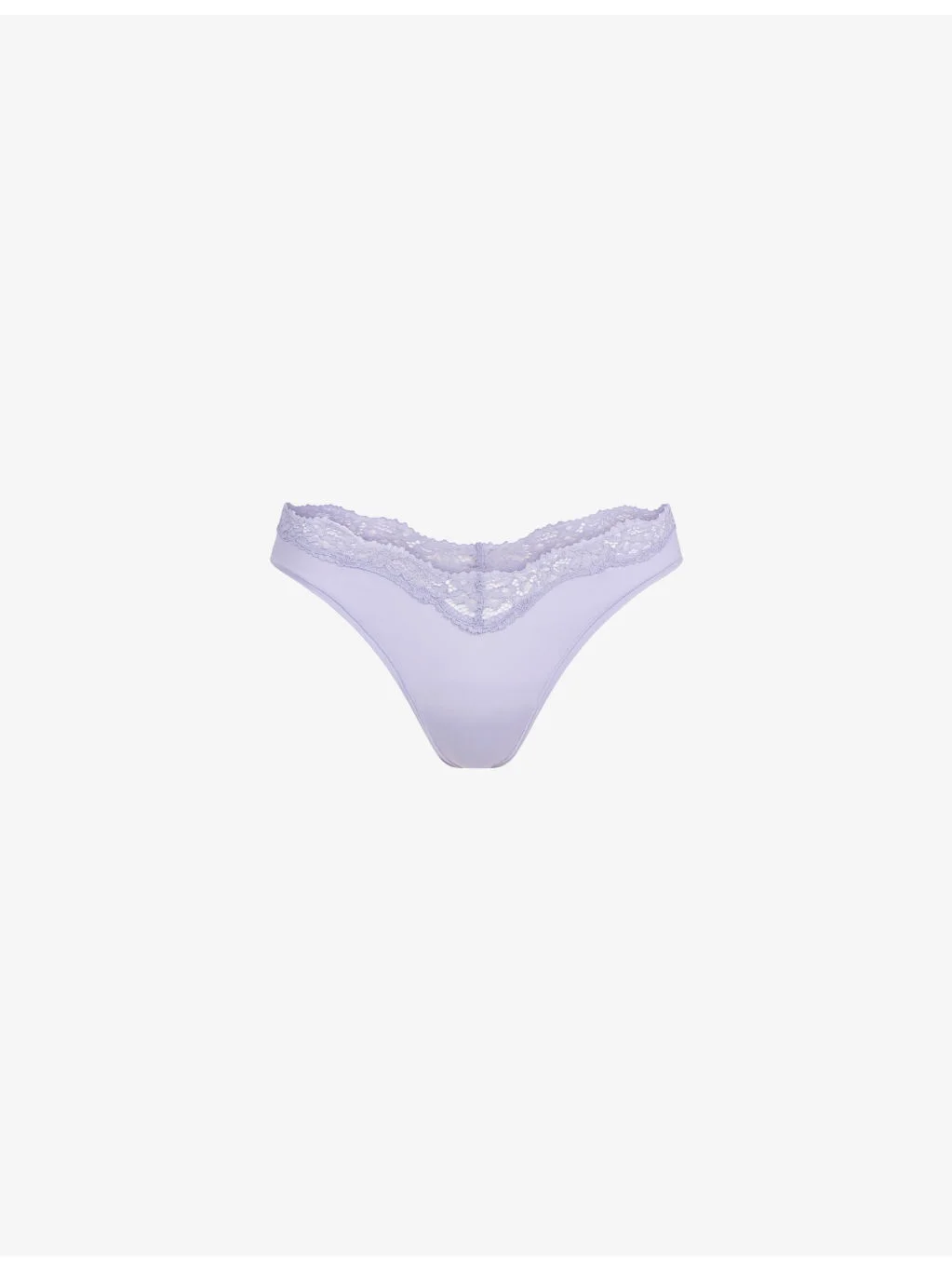 PRODUCT DETAILS - SKIMS lace thong - 76% polyamide, 24% elastane; gusett 100% cotton - Slips on - Low rise, dipped front, lace trims - Machine wash cold - True to size - Model is 5ft 9in/1.75m and wears a size small - Lightweight, stretchy - For hygiene reasons, we are unable to exchange or refund this product, unless faulty. Ref: R04428541