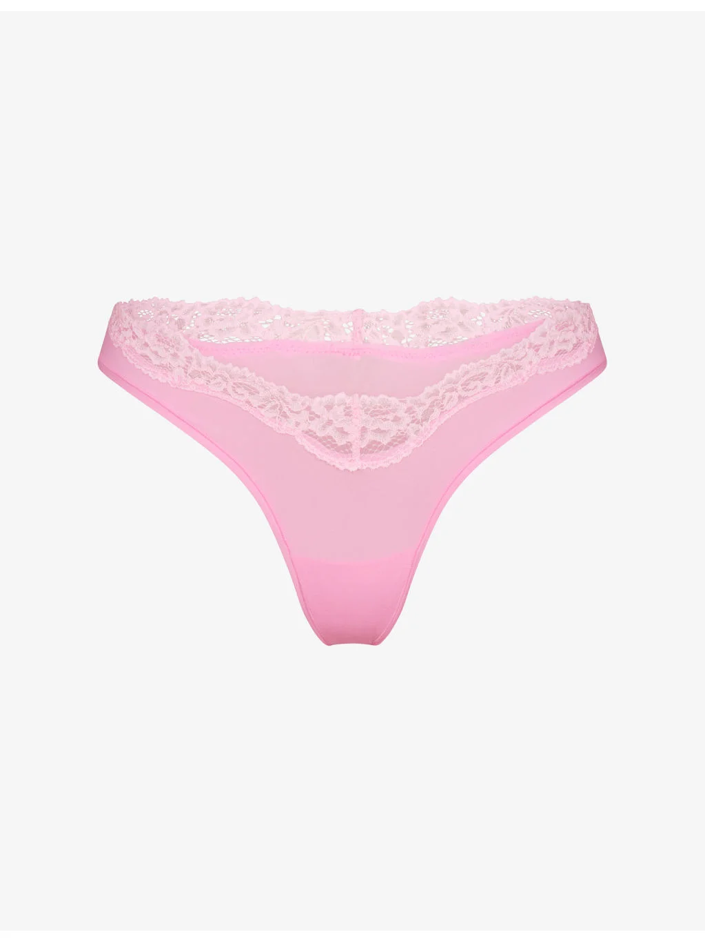 PRODUCT DETAILS - SKIMS stretch-woven thong - 76% polyamide, 24% elastane - Low rise, dipped front, lace trim at waistband, minimal coverage at back - Machine wash cold - True to size - Lightweight, stretchy - Model is 5ft 7in / 1.70m and wears a size S Ref: R04501702