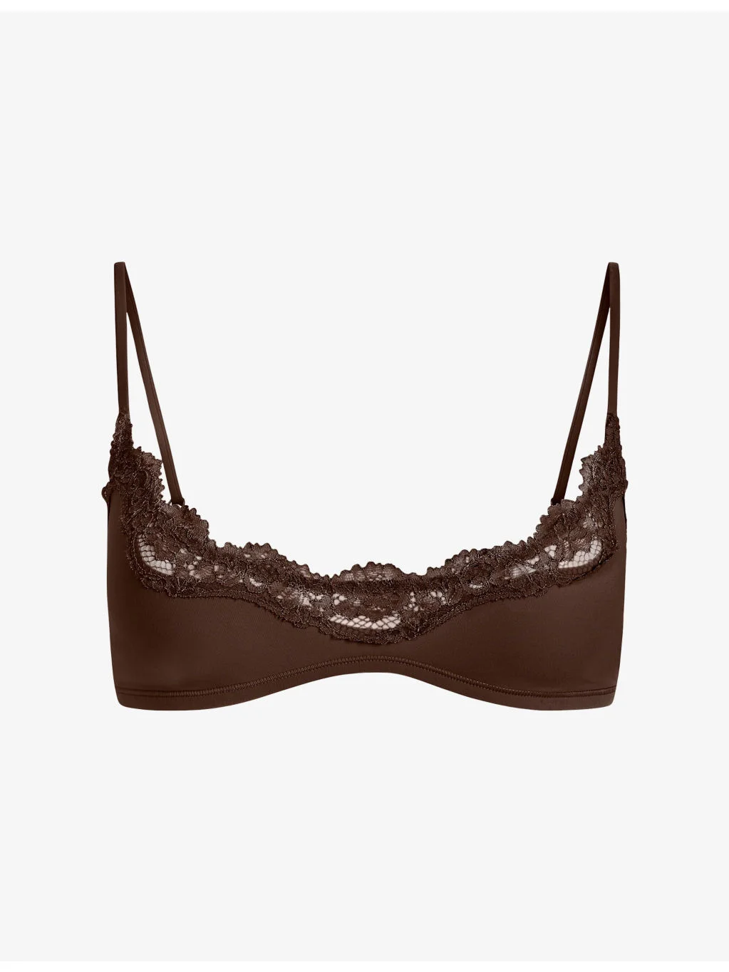PRODUCT DETAILS - Skims stretch-woven bralette - 76% polyamide, 24% elastane - Fits everybody lace collection, scoop front neckline, Adjustable straps, pullover style, lace trim, moderate coverage - Machine wash cold - True to size - Model is 5ft 9in/1.75m and wears a size small - Lightweight, stretchy Ref: R04538084