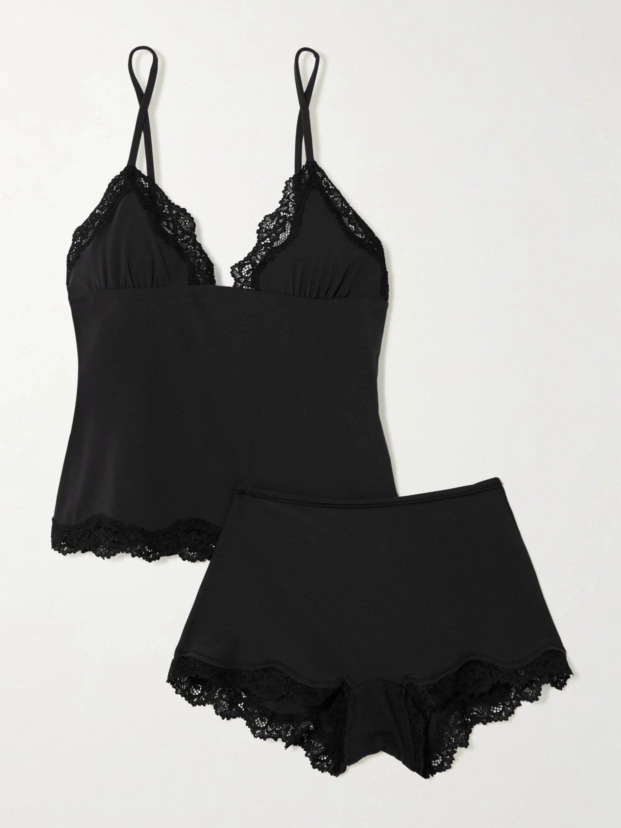 SKIMS prioritizes comfort and style. This 'Fits Everybody' set comes with a camisole and boy shorts, both cut from soft, lightweight stretch fabric and trimmed with pretty lace for a romantic touch.