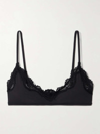 EDITORS'NOTES With each design, SKIMS further proves you don't have to sacrifice comfort when it comes to lingerie. Part of the brand's coveted 'Fits Everybody' collection, this bralette is cut from buttery stretch fabric that's free of padding and trimmed with lace along the scooped neckline. SIZE & FIT - 2XS = UK 2/ US 00/ IT 34 - XS = UK 4-6/ US 0-2/ IT 36-38 - S = UK 8-10/ US 4-6/ IT 40-42 - M = UK 12-14/ US 8-10/ IT 44-46 - L = UK 16-18/ US 12-14/ IT 48-50 - XL = UK 20/ US 16/ IT 52 - 2XL= UK 22-24/ US 18-20/ IT 54-56 - 3XL = UK 26-28/ US 22-24/ IT 58-60 - 4XL = UK 30-32/ US 26-28/ IT 62-64 - Fully adjustable shoulder straps - Model is 175cm/ 5'9", bra size 32B and is wearing a size XSmall - Bust: 81cm/ 32" - Waist: 68cm/ 27" - Hip: 91cm/ 36" DETAILS & CARE - Onyx stretch-polyamide and lace - Slips on - 76% polyamide, 24% elastane; trim: 66% polyamide, 24% polyester, 10% elastane - Machine wash
