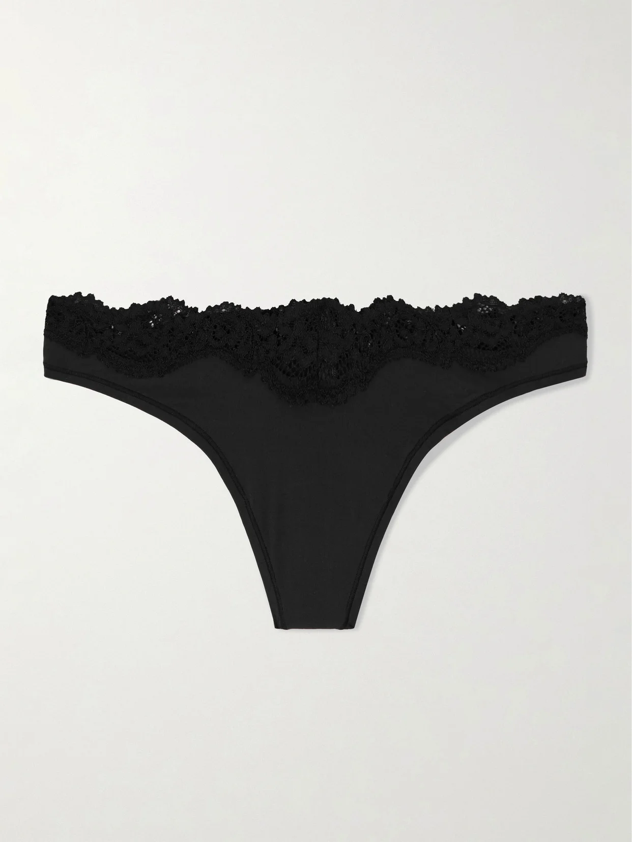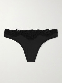 SKIMS' 'Fits Everybody' thong has a dipped front that ensures it'll stay invisible under low-rise pants. It's made from butter-soft stretch-jersey and trimmed with tonal lace. Make it a set with the coordinating bra.