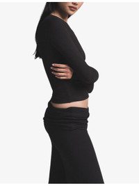 PRODUCT DETAILS - SKIMS stretch-cotton jersey top - 95% cotton, 5% elastane - Fitted, ribbed round neck, long sleeves, tonal stitching - Machine wash cold - True to size - Lightweight, stretchy Ref: R04538134