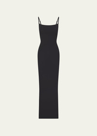 SKIMS double-lined maxi dress smooths the hips and legs Scoop neckline Sleeveless Adjustable straps Full length Bodycon silhouette Slipover style Nylon/polyamide/spandex Imported Model is 5'10"/177cm. Online Inquiries: BGS21_T5DZR| Store Inquiries: #4701856