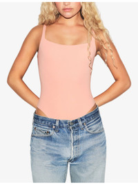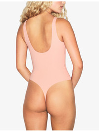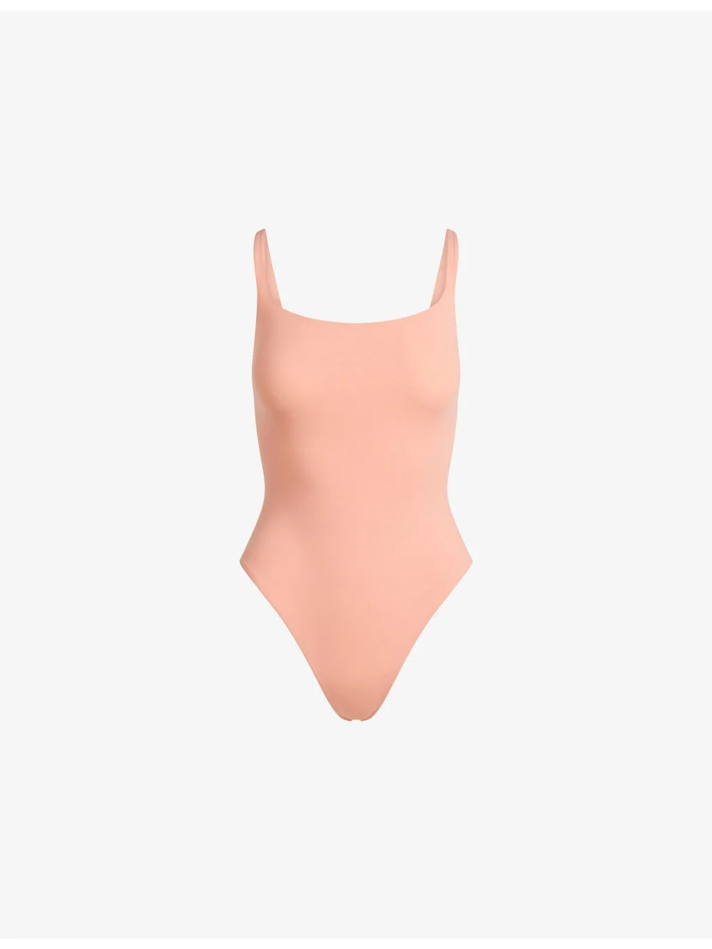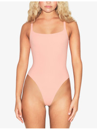 PRODUCT DETAILS - SKIMS jersey bodysuit - 76% polyamide, 24% elastane - Popper fastening - Slim fit, square neckline, sleeveless, scoop low back, thong back, jersey texture - Machine wash cold - True to size - Model is 5ft 9in/1.75m and wears a size small - Lightweight, stretchy - For hygiene reasons, we are unable to exchange or refund this product, unless faulty. Ref: R04428569