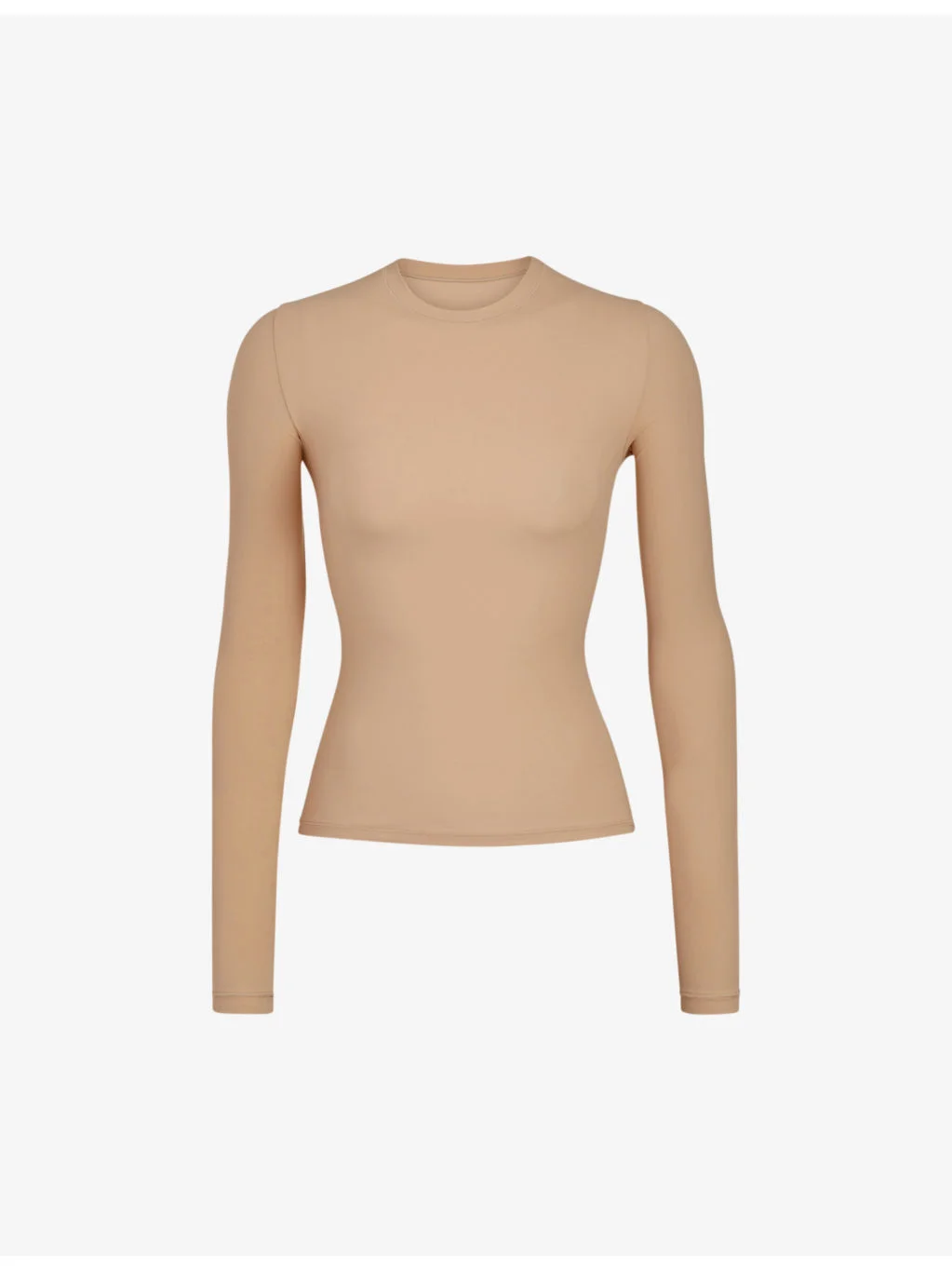 PRODUCT DETAILS - SKIMS stretch-jersey T-shirt - 76% polyamide, 24% elastane - Slips on - Fitted, round neck, long sleeves, seamless - Machine wash cold Ref: R04079522