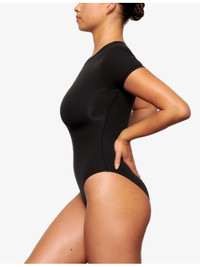 PRODUCT DETAILS - SKIMS stretch-woven body - 79% nylon, 21% elastane - Popper fastening - Scoop neck, sleeveless, fitted, seamless, tonal stitching, v-string at back - Machine wash mild - True to size - Lightweight, stretchy