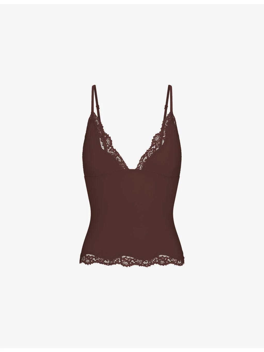 PRODUCT DETAILS - SKIMS jersey top - 76% polyamide, 24% elastane - Slim fit, plunge neckline, lace trim at neckline, sleeveless, with adjustable straps - Machine wash cold - True to size - Model is 5ft 10in/1.78m and wears a size small - Lightweight, stretchy Ref: R04538132