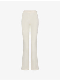 PRODUCT DETAILS - SKIMS jersey trousers - 100% polyester - Slim fit, high-rise, elasticated waistband, flared leg, jersey texture - Machine wash cold - True to size - Model is 5ft 10in/1.78m and wears a size small - Lightweight, stretchy Ref: R04538109