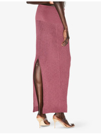 PRODUCT DETAILS - SKIMS knitted maxi skirt - 76% polyamide, 24% elastane - Slim fit, elasticated foldover waistband, central rear slit, all-over sheer knit design, maxi length - Machine wash cold - True to size - Lightweight, stretchy Ref: R04501706