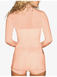 PRODUCT DETAILS - SKIMS jersey top - 56% polyamide, 44% elastane - Slim fit, mock neck, long sleeves, high side splits, jersey texture, sheer - Hand wash - True to size - Model is 5ft 10in/1.78m and wears a size small - Lightweight, stretchy Ref: R04468893