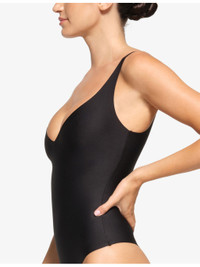 PRODUCT DETAILS - SKIMS stretch-woven bodysuit - 61% polyamide, 39% elastane - Slips on - Plunge neck, unlined cups, adjustable back straps, bottom gusset with snap closure - Machine wash cold - True to size - Lightweight, stretchy Ref: R04468879