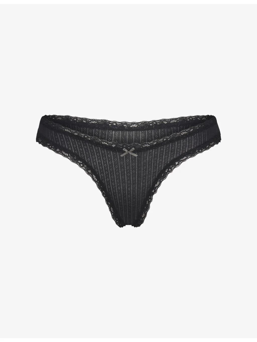 PRODUCT DETAILS - SKIMS stretch-cotton thong - 93% cotton, 7% elastane - Low-rise, elasticated waistband, satin bow embroidery at front, lace trim at waist and leg, minimum back coverage - Machine wash cold - True to size - Lightweight, slight stretch - For hygiene reasons, we are unable to exchange or refund this product, unless faulty. Ref: R04572187