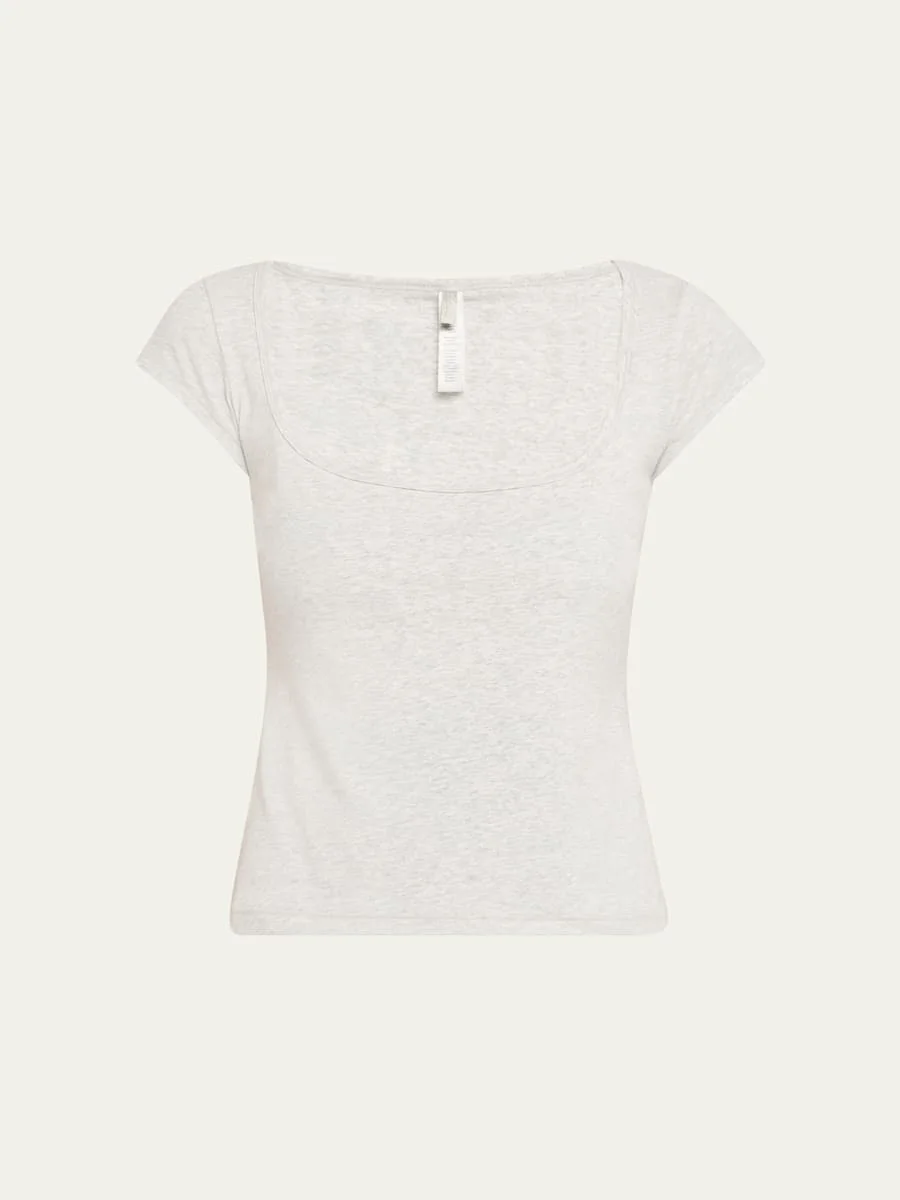 SKIMS tee crafted in signature cotton jersey Scoop neckline Cap sleeves Slim fit Pullover style Cotton/elastane Imported Proposition 65 warning for California residents Online Inquiries: BGS21_I2PBV| Store Inquiries: #5014024
