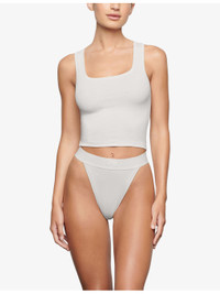 PRODUCT DETAILS - SKIMS stretch-cotton tank top - 95% cotton, 5% elastane - Slim fit, scoop neck, sleeveless, slightly cropped, jersey texture - Machine wash cold - True to size - Lightweight, stretchy Ref: R04501671