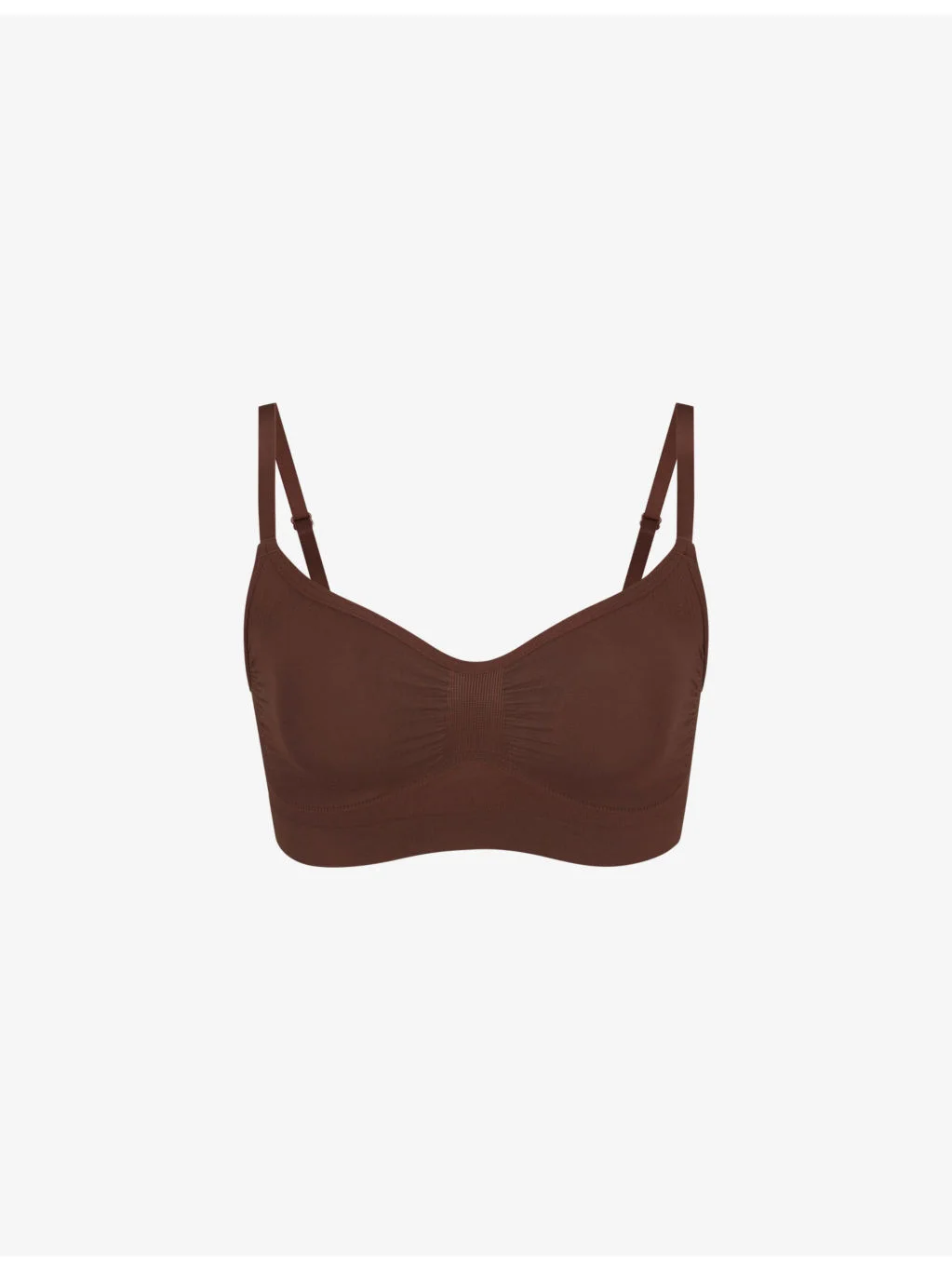 PRODUCT DETAILS - SKIMS stretch-woven bra - 78% nylon, 22% elastane - Slips on - Scoop neck, adjustable shoulder straps, supportive panel at chest, non-slip band at hem, seamless construction - Machine wash cold - True to size - Lightweight, stretchy Ref: R04134834