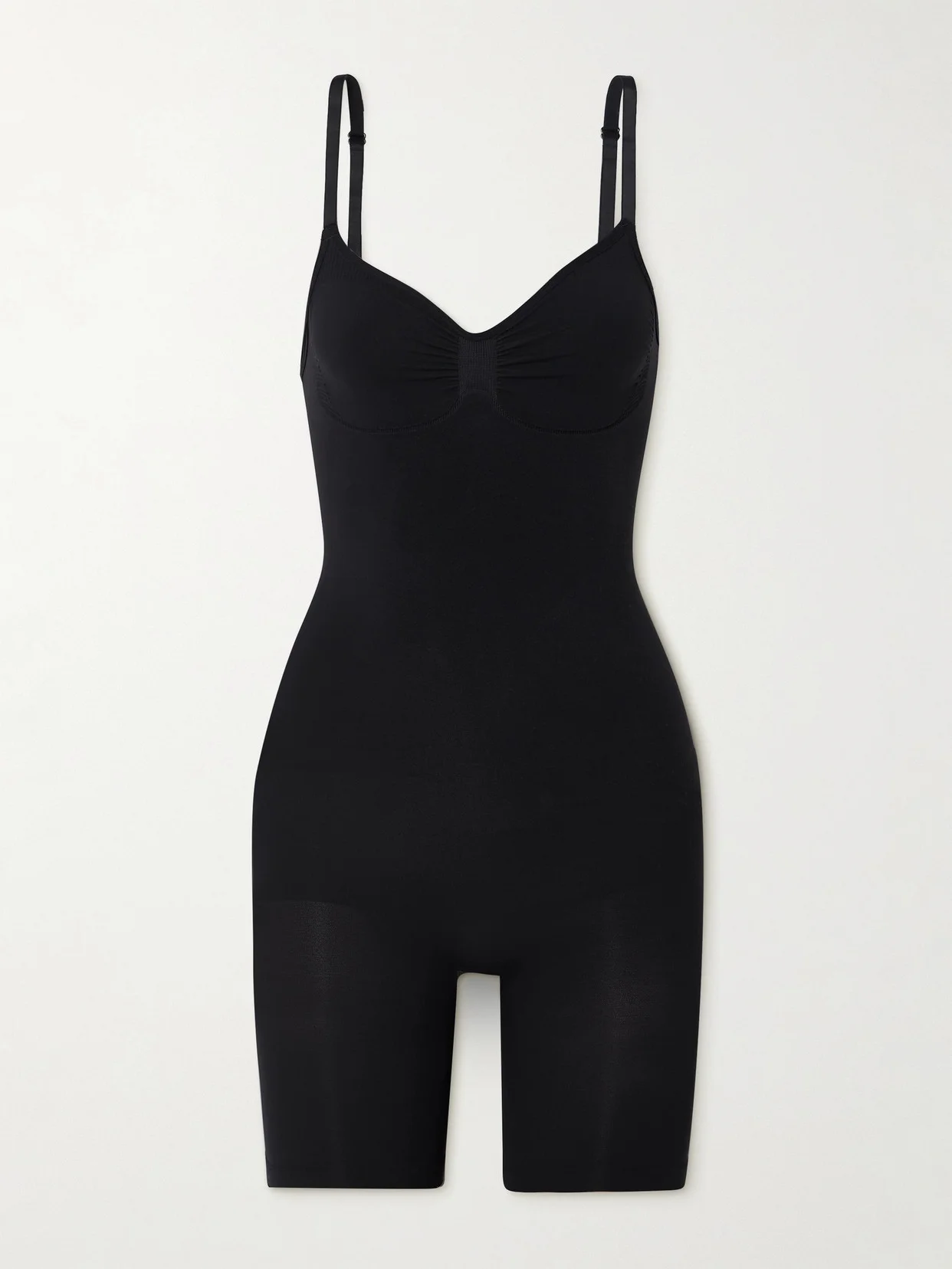 SKIMS' 'Seamless Sculpt' collection is designed to smooth and define the figure. Made from high-compression stretch fabric, this bodysuit has mid-length shorts and a scooped back, so you can wear it under low-cut dresses or tops.