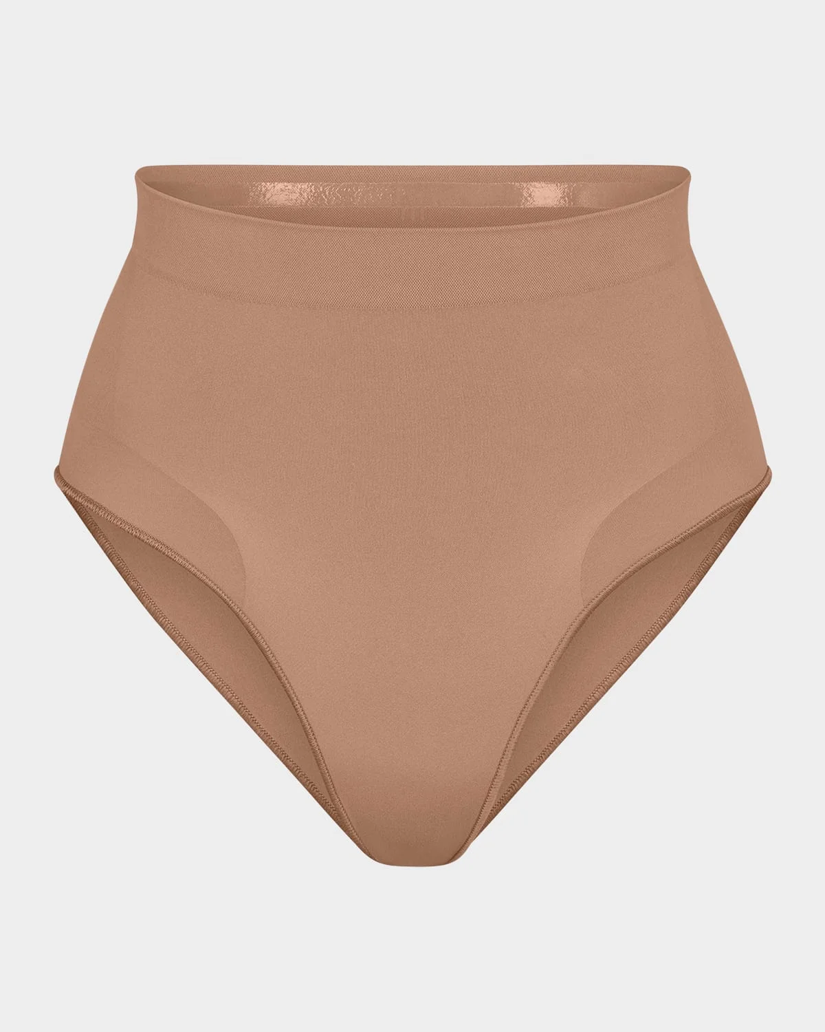 SKIMS briefs with strong targeted compression Waistband with interior silicone to prevent rolling Highcut legs Moderate seat coverage Wide, cottonlined gusset Nylon/polyamide/elastane Imported