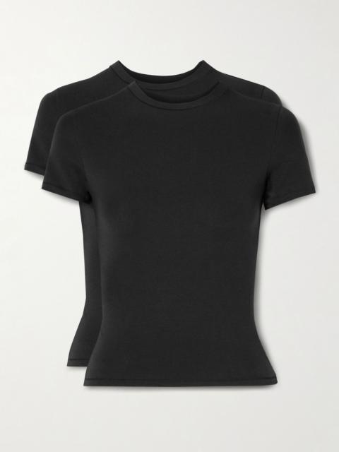 The perfect foundation to countless outfits, SKIMS' T-shirt is sure to be worn on repeat, so this set of two is a smart choice. Each is cut for a close fit from soft cotton-jersey that's blended with plenty of stretch for a comfortable feel. Size & Fit - Fits true to size, take your normal size - Cut for a close fit - Mid-weight, stretchy fabric - Model is 177cm/ 5'10" and is wearing a size XSmall Model measurements: - Bust: 79cm/ 31" - Waist: 61cm/ 24" - Hip: 85cm/ 33.5" Details & Care - Soot stretch-cotton jersey - Slips on - 90% cotton, 10% elastane - Machine wash