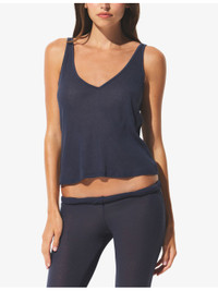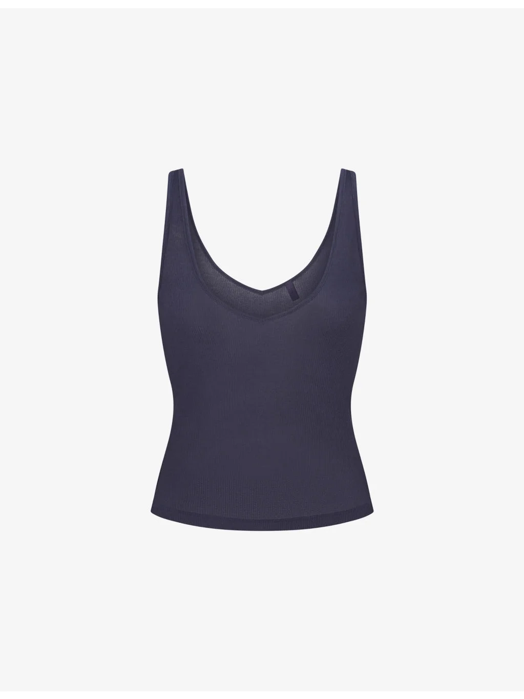 PRODUCT DETAILS - SKIMS cotton-blend tank top - 85% polyester, 15% cotton - Slim fit, plunging V-neckline, sleeveless, low back, sheer finish, airy ultra-soft ribbed fabric - Machine wash cold - True to size - Model is 5ft 10in/1.78m and wears a size small - Lightweight, stretchy Ref: R04501714