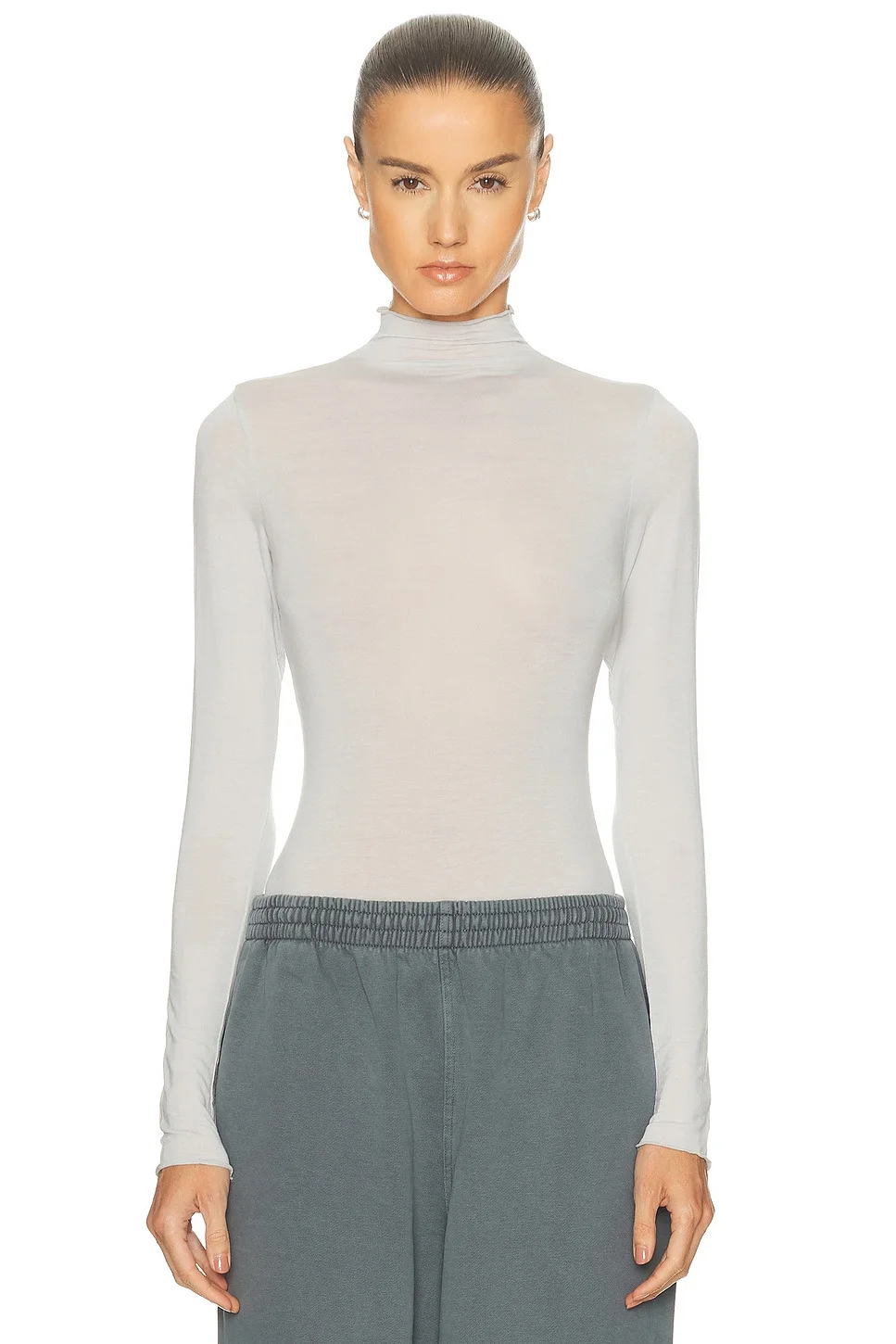 Sheer Modal Long Sleeve Turtleneck Bodysuit