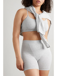 SKIMS' 'Boyfriend' collection riffs on the shape of men's boxer shorts. Topped with a comfortable elasticated waistband, this pair is cut from soft modal and cotton-blend jersey that's spun with plenty of stretch. Wear yours with one of the label's tanks in a matching shade. Size & Fit - 2XS = UK 2/ US 00/ IT 34 - XS = UK 4-6/ US 0-2/ IT 36-38 - S = UK 8-10/ US 4-6/ IT 40-42 - M = UK 12-14/ US 8-10/ IT 44-46 - L = UK 16-18/ US 12-14/ IT 48-50 - XL = UK 18-20/ US 14-16/ IT 50-52 - 2XL= UK 20-22/ US 16-18/ IT 52-54 - 3XL = UK 24-26/ US 20-22/ IT 56-58 - 4XL = UK 28-30/ US 24-26/ IT 60-62 - Fits true to size, take your normal size - High-rise, designed for a slim fit - Elasticated at the waist for a comfortable fit - Lightweight, stretchy fabric - Model is 177cm/ 5'10" and is wearing a size XSmall Details & Care - Light Heather Grey stretch-modal and cotton-blend jersey - Pull on - 48% modal, 47% cotton, 5% elastane - Machine wash
