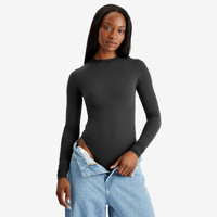 Buttery soft and versatile, the Long Sleeve Crewneck Bodysuit from SKIMS' Fits Everybody collection is a wardrobe must-have. Great for layering, this stretchy bodysuit features a thong back and snap closure for no visible panty lines and easy on-off wear. - 76% Polyamide, 24% Elastane - High Crew Neckline - High Cut Leg Opening - Snap Closure - Thong Back - Machine Washable