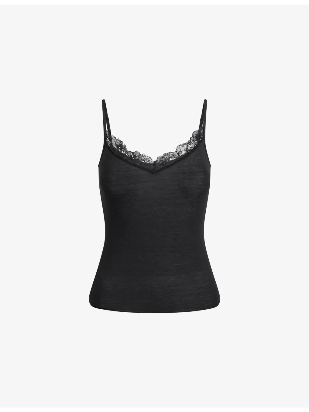 PRODUCT DETAILS - SKIMS modal and cashmere-blend camisole top - 84% modal, 10% cashmere, 6% elastane - Slim fit, scoop neck, adjustable spaghetti straps, floral lace embroidery, sheer finish - Machine wash cold - True to size - Model is 5ft 10in/1.78m and wears a size small - Lightweight, slight stretch Ref: R04538115