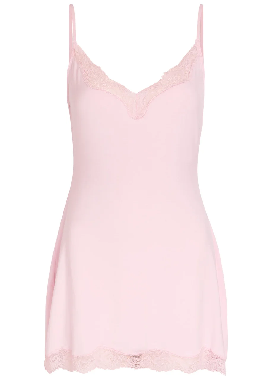 Style Notes A mini made for dreamy nights. This ultra-soft dress features a scoop neckline, adjustable straps, and lace trim at the neckline and hem for a;luxurious touch. Info & Care Skims stretch-modal dress Part of the Skims Sleep collection Scoop-neck, lace trim detailing at neckline and hem, adjustable straps Slips on 93% modal, 7% elastane Machine wash cold Size & Fit Midweight Loose fit