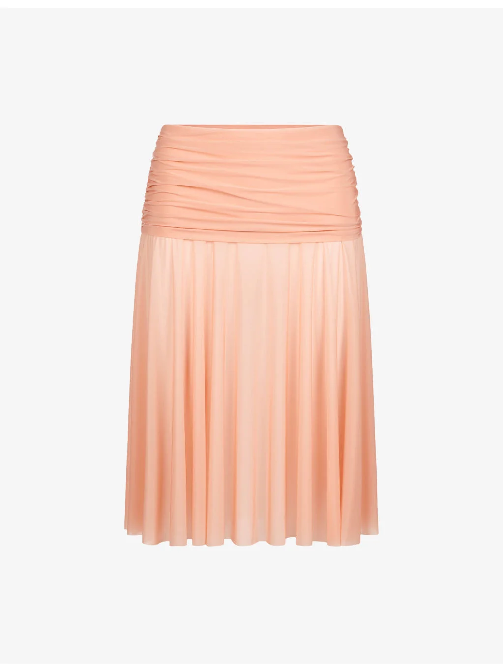 PRODUCT DETAILS - SKIMS jersey midi skirt - 56% polyamide, 44% elastane - Regular fit, mid-rise, elasticated waistband, fixed fold-over waist with ruching, A-line shape, flared, raw hem - Hand wash - True to size - Model is 5ft 10in/1.78m and wears a size small - Lightweight, stretchy Ref: R04468885