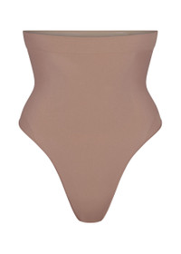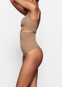 Style Notes Wear this perfectly stretchy, shapewear high-waisted thong for a flattering, cinched look without panty lines. Features a high waist fit that hits right below the bust, an interior silicone underband to prevent roll-down, a cotton gusset, and a wide crotch for added coverage. Info & Care Skims seamless sculpt thong Part of the Seamless Sculpt collection Underband with interior silicone, strong compression along tummy and waist, wide 100% cotton gusset for added coverage, thong back 82% nylon, 18% elastane Machine wash cold