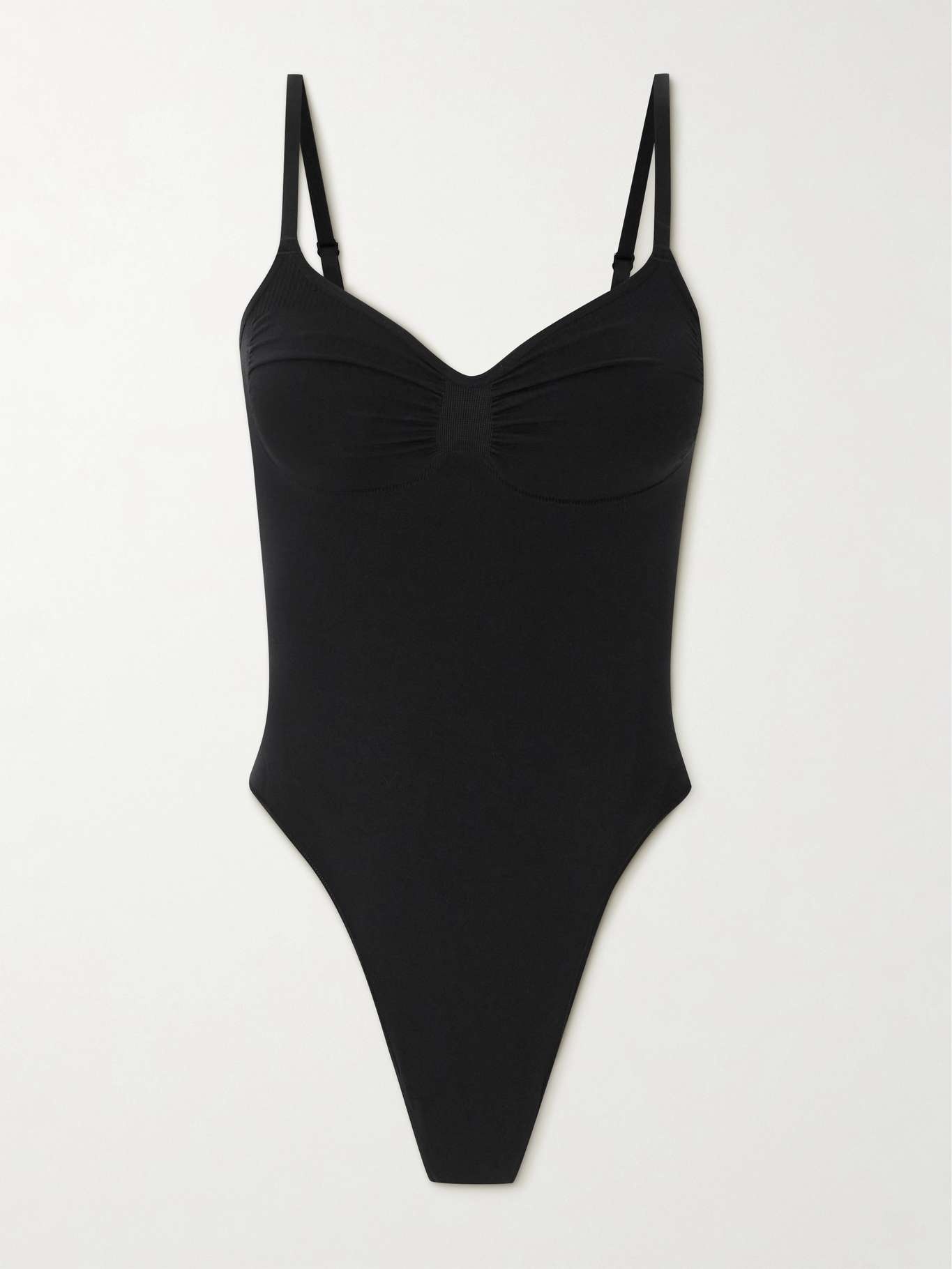 EDITORS'NOTES Designed to sculpt and define the figure, SKIMS' bodysuit is made from the label's stretchy compression fabric, which targets your core and waist. It has piqué stitches to outline the bust and a seamless thong at the back for a smooth finish under fitted clothing. SIZE & FIT - 2XS = UK 2/ US 00/ IT 34 - XS = UK 4-6/ US 0-2/ IT 36-38 - S = UK 8-10/ US 4-6/ IT 40-42 - M = UK 12-14/ US 8-10/ IT 44-46 - L = UK 16-18/ US 12-14/ IT 48-50 - XL = UK 18-20/ US 14-16/ IT 50-52 - 2XL= UK 20-22/ US 16-18/ IT 52-54 - 3XL = UK 24-26/ US 20-22/ IT 56-58 - 4XL = UK 28-30/ US 24-26/ IT 60-62 DETAILS & CARE - Onyx stretch-nylon - Snap fastenings at base - 41% recycled nylon, 41% nylon,18% elastane - Machine wash