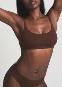 Style Notes With its buttery-soft fabric and flattering fit, this stretchy pullover bralette molds to and supports your bust while feeling light and comfortable. The second-skin design prevents digging and ensures a smooth look under clothing. Features a scoop neck and adjustable shoulder straps. Info & Care Skims stretch-jersey bralette Part of the Fits Everybody collection Adjustable straps, shelf-bralette style, encased elastic underbust seam Pullover style 76% polyamide, 24% elastane Machine wash cold