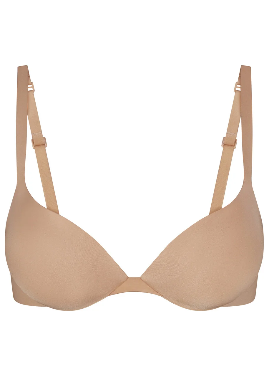 Style Notes The Ultimate Bra redefines traditional push-up bras by enhancing your natural bust shape and completely transforming the look, shape, and fullness of your bust. This bra is made of a super soft sheen microfibre fabric with extra compressive side wings for smoothing. With a comfortable, concealed underwire and premium teardrop shaped foam pads, this bra sits seamlessly under clothing. Info & Care Skims push-up bra Part of the Ultimate collection Soft foam push-up pads for seamless look, lightweight, plunge neckline, concealed underwire with a soft brushed casing, elasticated adjustable straps Hook and eye closure at back 84% nylon, 16% elastane Hand wash cold Size & Fit Designed for a snug fit
