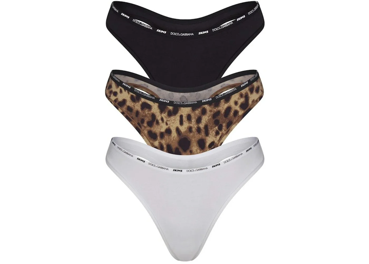 SKIMS x Dolce&Gabbana Cotton Jersey Dipped Thong (3-Pack) Leopard-Multi