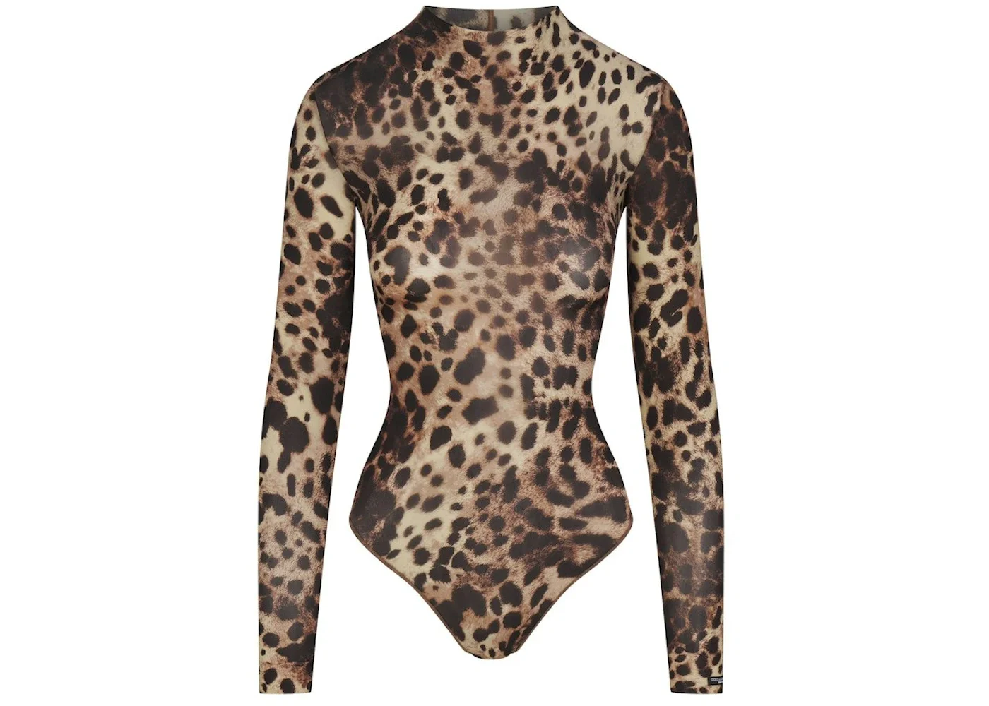 SKIMS x Dolce&Gabbana Milky Sheer Mock Neck Bodysuit Leopard