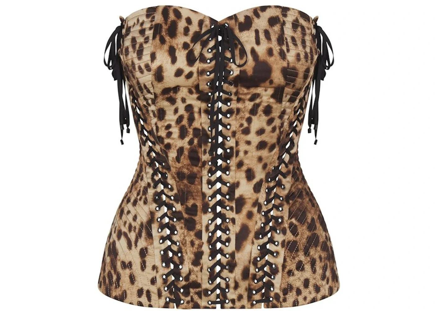 SKIMS x Dolce&Gabbana Silk Lace Up Corset Leopard