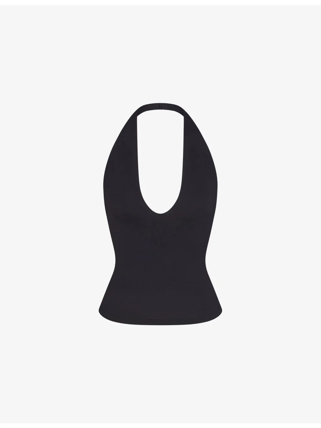 PRODUCT DETAILS - SKIMS modal-jersey top - 93% modal, 7% elastane - Slim fit, halterneck, plunging V-neck, sleeveless, interior shelf bra - Machine wash cold - True to size - Model is 5ft 11in/1.80m and wears a size small - Lightweight, stretchy Ref: R04572197