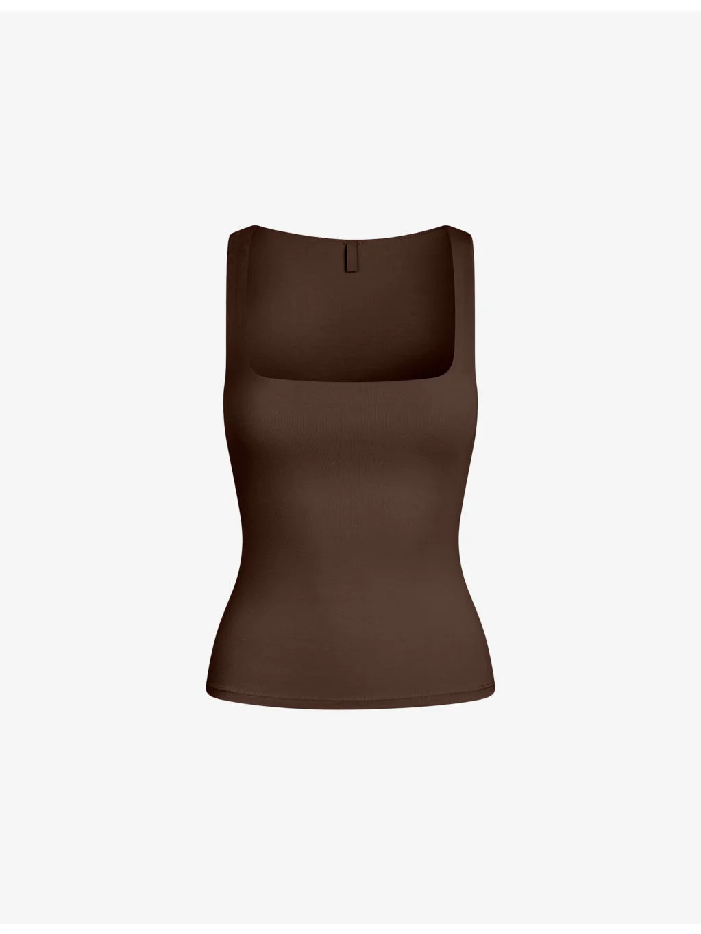 PRODUCT DETAILS - SKIMS modal-jersey tank top - 93% modal, 7% elastane - Slim fit, square neck, sleeveless, smooth jersey texture - Machine wash cold - True to size - Model is 5ft 9in/1.75m and wears a size small - Lightweight, stretchy Ref: R04538117