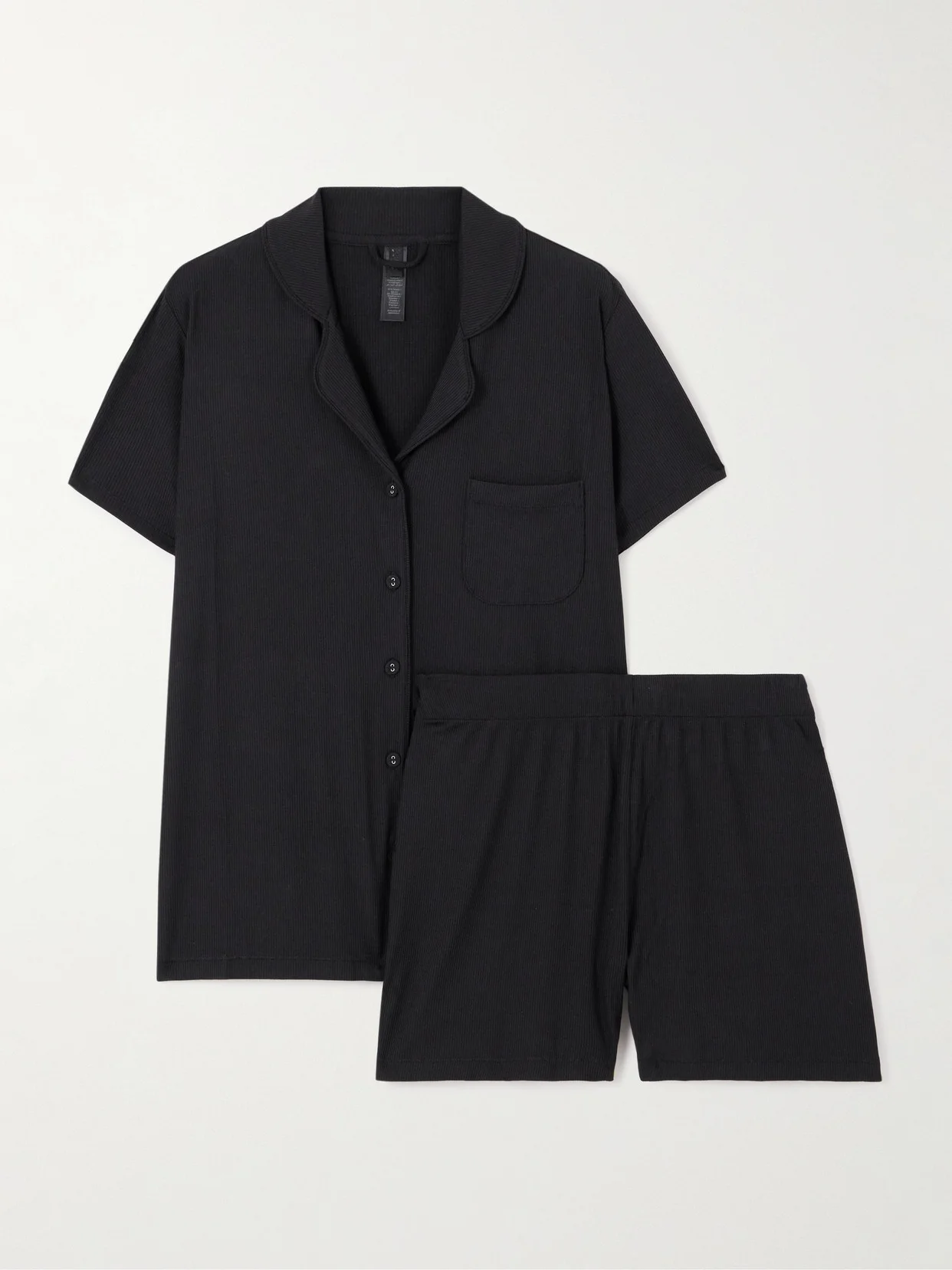 SKIMS' pajama set is designed with utmost comfort in mind, ensuring restful sleep and effortless lounging. Made from ribbed stretch-modal jersey, it has a relaxed top with a camp collar and elasticated shorts.